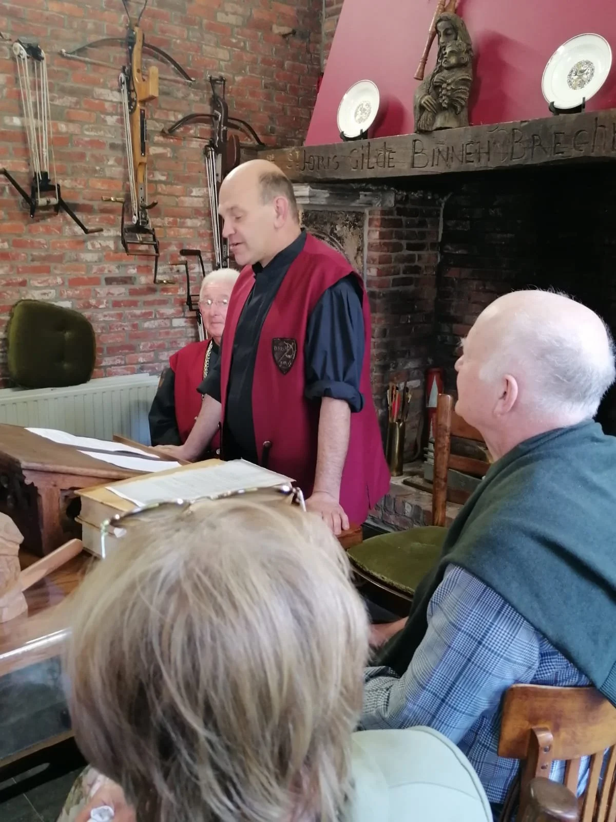 Om 11 uur riep Hoofdman Achiel van Ballaert iedereen binnen in het Gildelokaal. Hij zorgde voor het openingswoord, waarbij Achiel en diens echtgenote, Lydia, iedereen welkom heetten. Onze overleden gildebroeders indachtig, werd er een minuut stilte gehouden voor Ere Hoofdman, August Hendrickx en Jonge Deken, Frans van Looveren.