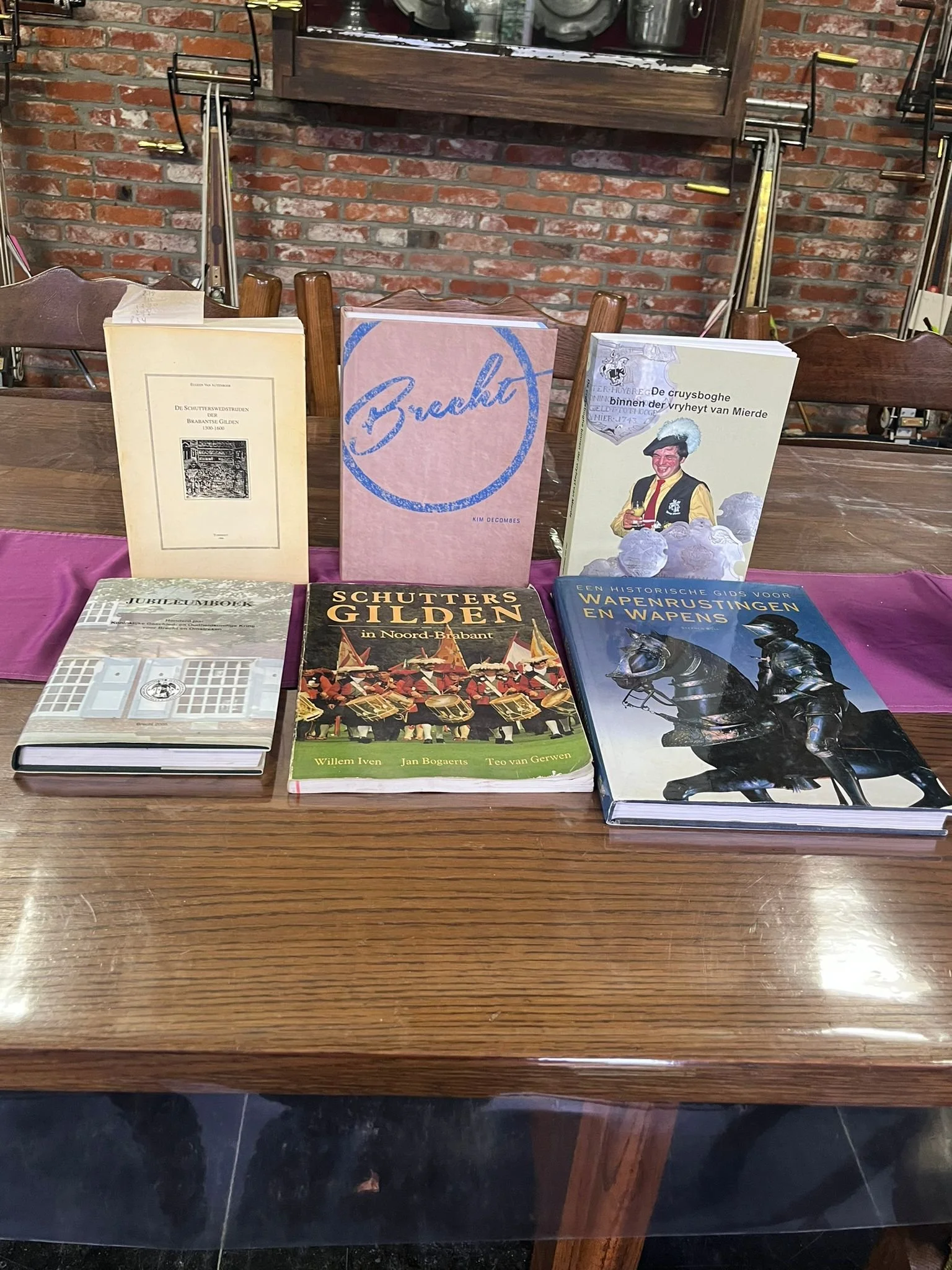 Tot onze verbazing vonden we in het gildelokaal een 5-tal boeken over de gilde(s), evenals een fraai beeldje van Sint-Joris op zijn paard. De gulle gift bleek afkomstig te zijn van één van onze keizers, Kris van Looveren, die dit alles meebracht uit het ouderlijk huis van zijn vader, onze betreurde gildebroeder Frans van Looveren, die vorig jaar overleed. Veel dank Kris.